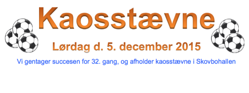 Lørdag d. 5. dec 2015 afholder vi vores traditionsrige kaosstævne. I år er det 32. gang vi afholder dette velbesøgte stævne.